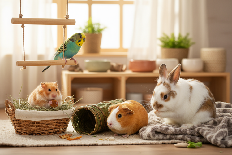 Discover our selection of products for small pets including birds, hamsters, guinea pigs, rabbits, and other furry friends. From cozy costumes to comfortable accessories, we have everything your small companion needs.